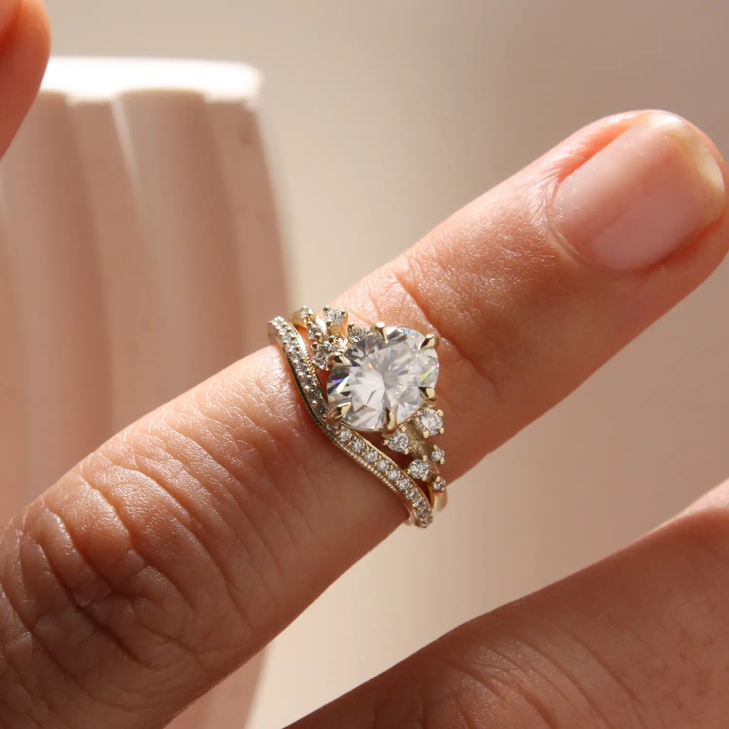 Please note the inherently delicate nature of the Cosmos Ring. This refined design is not intended for rigorous activities and may not be best suited to brides-to-be who are especially hard on their hands.