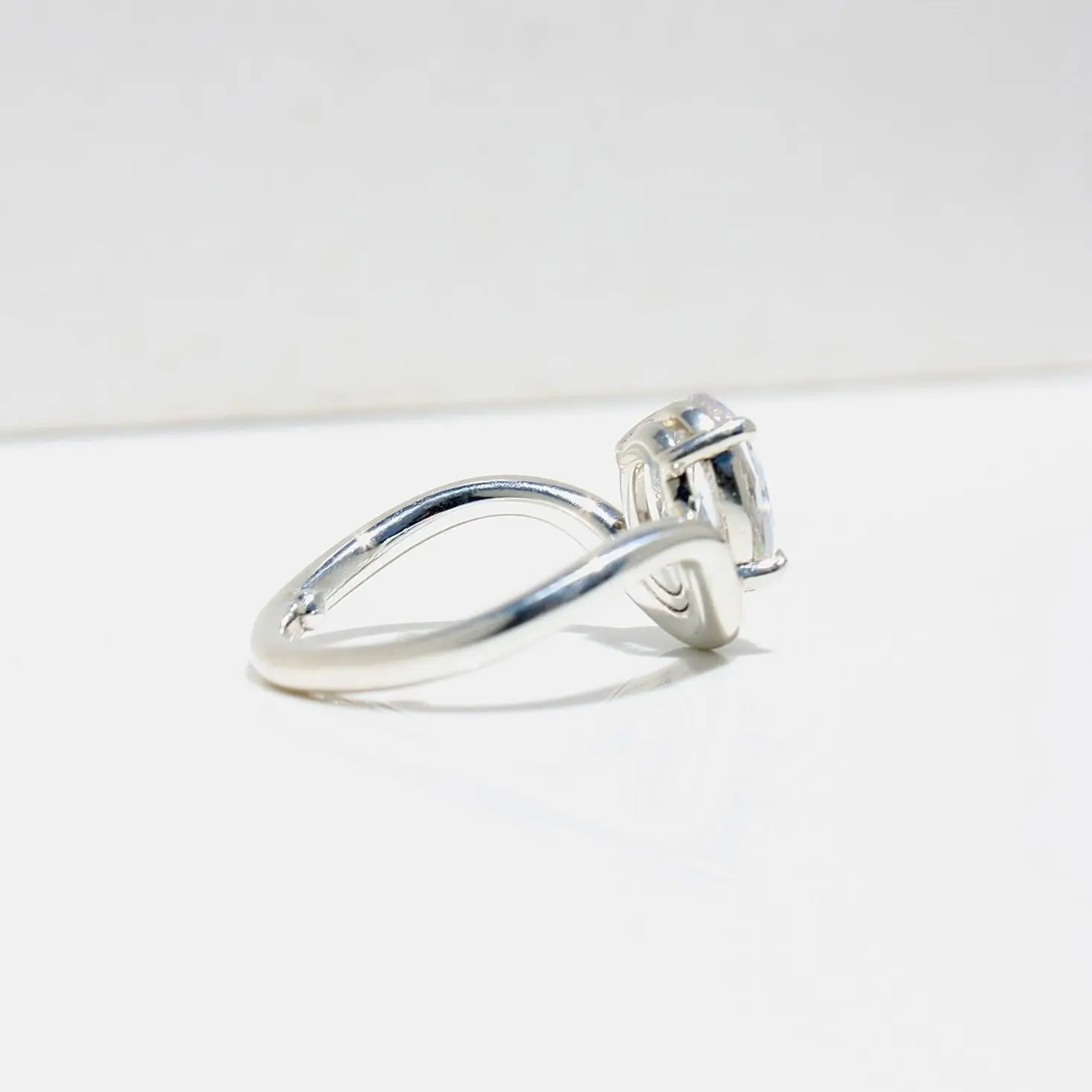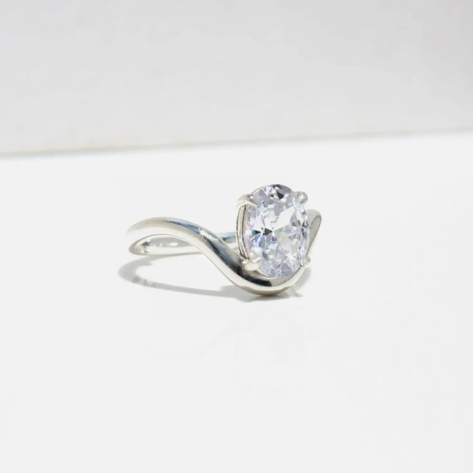 Our Envelop Solitaire Ring is a contemporary twist on the iconic solitaire. Exquisitely handcrafted in our Johannesburg atelier from precious recycled gold and platinum, an oval-cut centre stone of your choice is gracefully embraced by sleek cat claws. The luminous stone appears to float above a sumptuous gold band that flows like silk around the finger—an elegant design that envelopes the essence of romance, modernity, and enduring luxury.