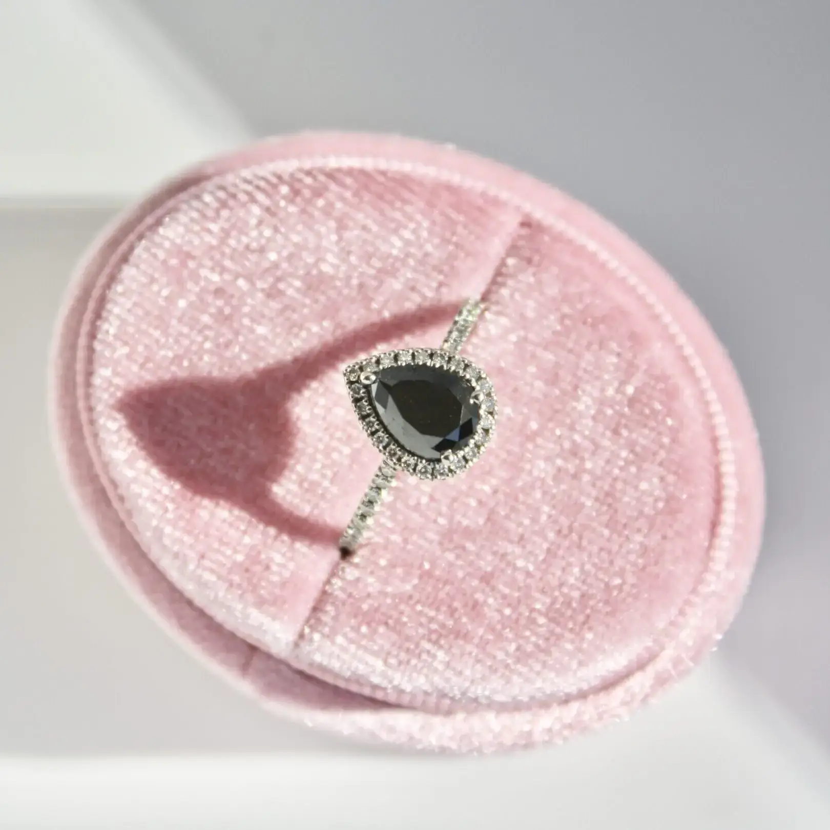 Our Pavé Halo Ring is a luminous expression of timeless elegance and classic styling. Exquisitely handcrafted in our Johannesburg atelier from precious recycled gold and platinum, your chosen pear-cut centre stone is encircled by a radiant halo of handset melee diamonds. A single row of pavé diamonds continues along the band, amplifying brilliance and creating a breathtaking display of sparkle, sophistication, and enduring luxury.