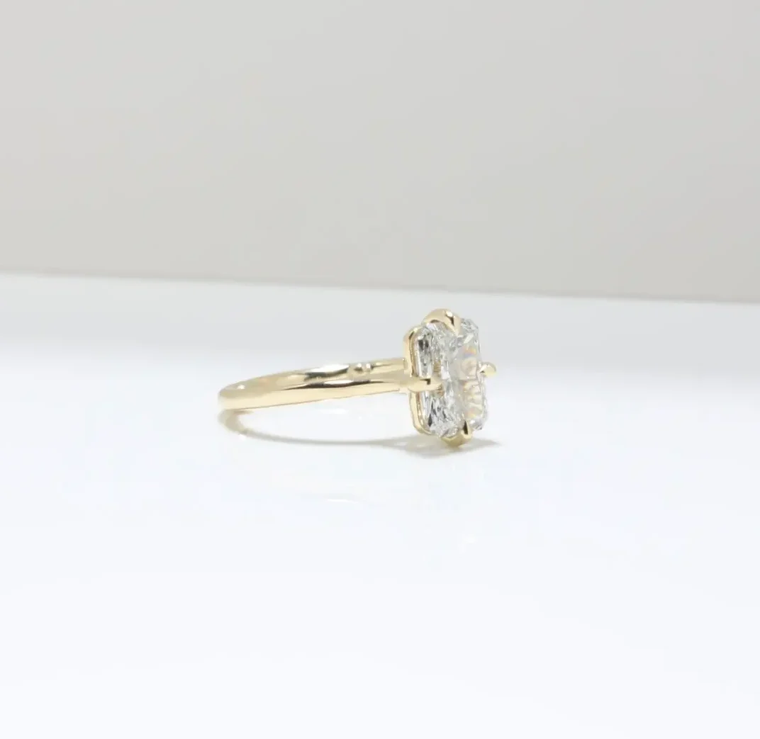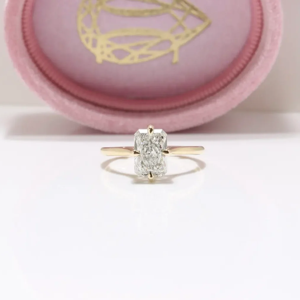 A contemporary ode to the timeless solitaire, our Compass Solitaire Ring is exquisitely handcrafted in our Johannesburg atelier from precious recycled gold and platinum. Your choice of a radiant-cut centre stone is cradled by four elegant cardinal claws atop a tapered, fully rounded band, while an open gallery allows light to dance freely through every facet, igniting a symphony of brilliance, sparkle, and scintillation.